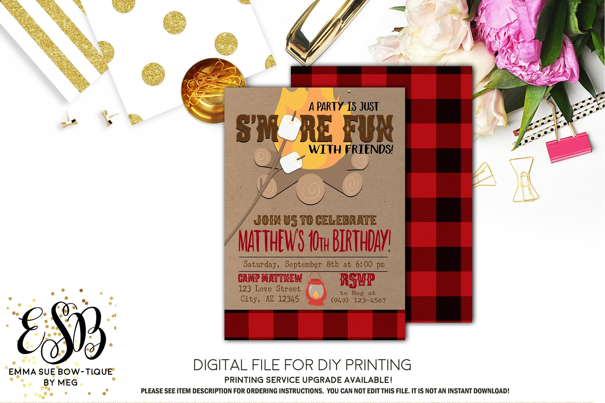 A party is just S'more Fun with Friends Buffalo Plaid Birthday Party invitation Printable - Digital File (smore-marshmellow)