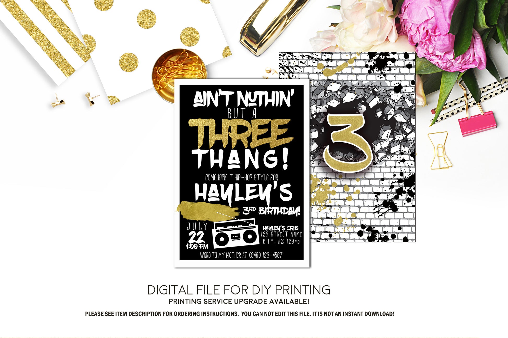 Ain't nuthin' but a three thang - 3rd Birthday Hip Hop invitation Printable - Digital File (hiphop-threethang)