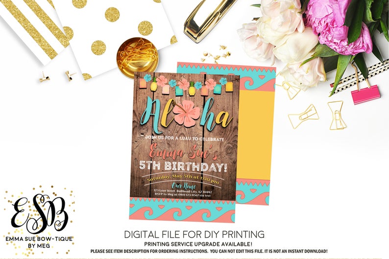 Aloha Luau Hawaiian Birthday Party invitation Printable - Digital File (aloha-luau2018)