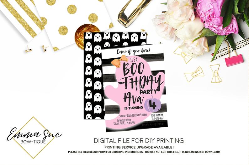Boo-thday Pastel Pumpkins and Ghost - Halloween Birthday Party invitation Printable - Digital File (ghost-2019pastel)
