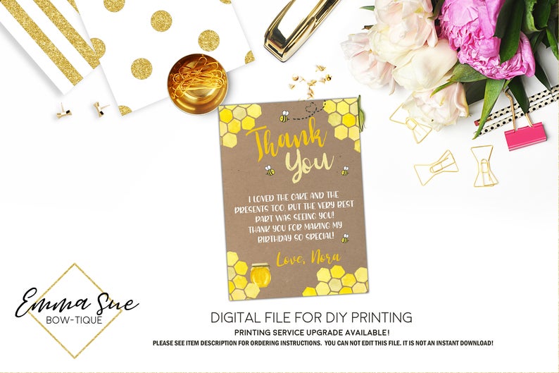 Honey Bee 1st Birthday Party invitation Printable - Digital File (Bee-kraft)
