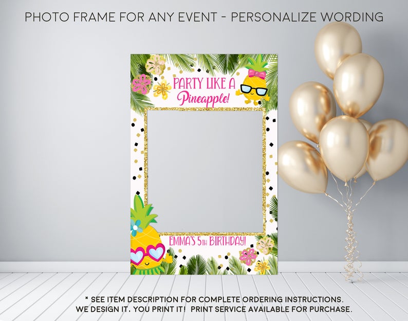 Party Like a Pineapple Tropical Luau Kids Birthday Party - Photo Prop Frame Sign - Digital File