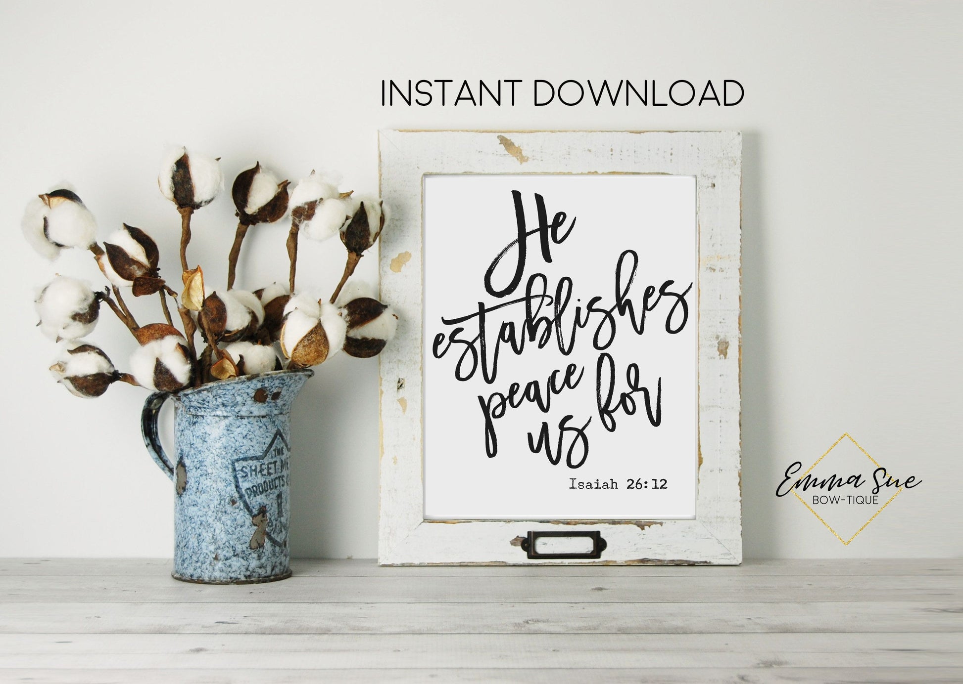 He establishes peace for us Isaiah 26:12 Bible Scripture Farmhouse Wall Art Printable