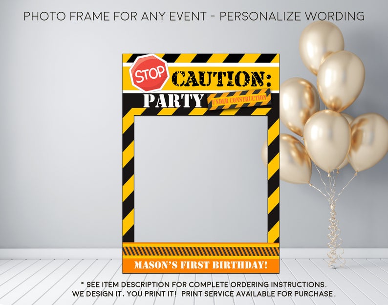 Caution party under construction Dump Truck kids birthday - Photo Prop Frame Sign - Digital File