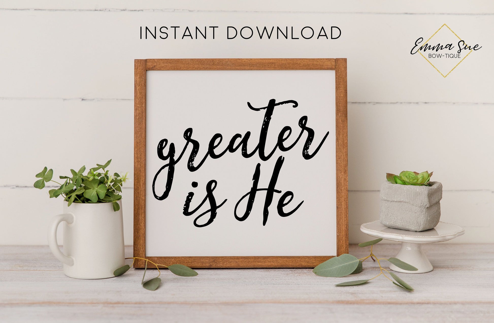 Greater is He - Christian Printable Art Farmhouse Sign - Digital File