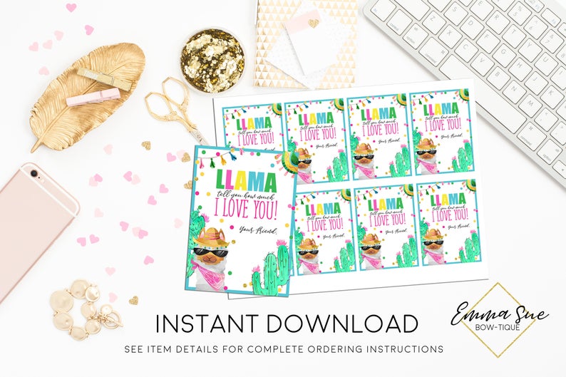 Llama tell you how much I love you - Kid's Valentine's Day Card Printable - Digital File - Instant Download