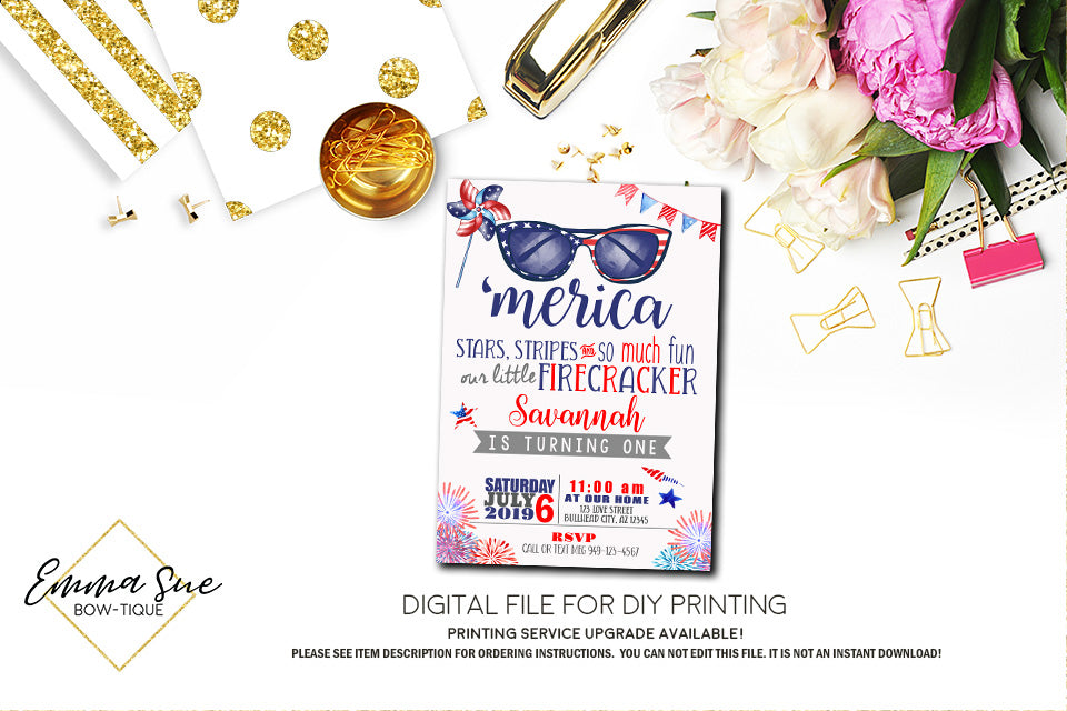 'Merica Patriotic Red White and Blue Birthday invitation Printable - Digital File (Rwb-Girl)