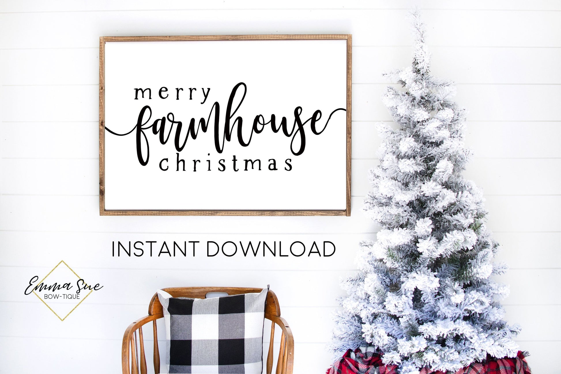 Merry Farmhouse Christmas - Black and White Christmas Decor Printable Sign Farmhouse Style - Digital File