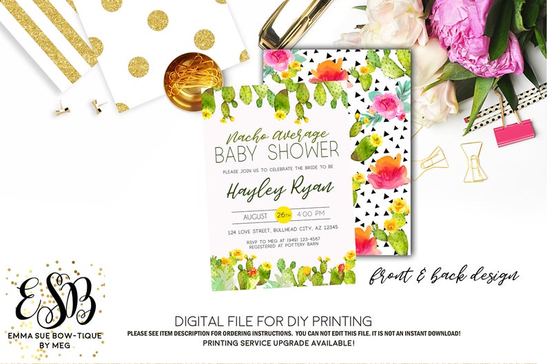 Nacho Average Baby Shower - Succulent and cactus Fiesta Invitation- Digital Printable File (Baby-nachosucc)