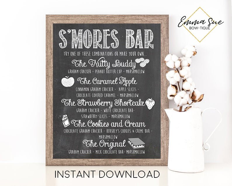 S'more Menu Chalkboard Design Printable Sign - Digital File - Instant Download