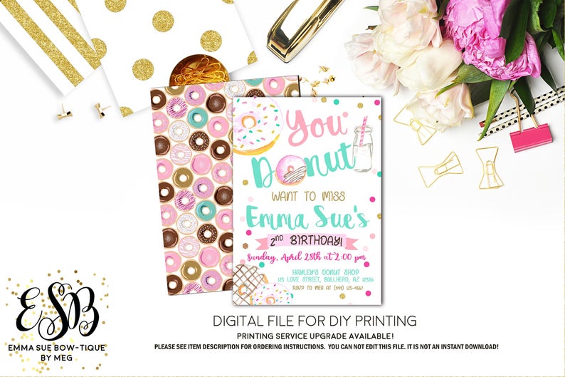 You Donut want to Miss - Girl's Birthday Party Invitation Printable - Digital File (Donut-Confetti)